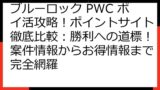 これらの調査の結果、現時点では、ブルーロック PWC を対象とした具体的なポイ活案件は確認できませんでした。