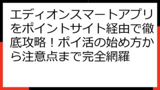 エディオンスマートアプリのポイ活完全ガイド:ポイントサイト経由で賢くお得に利用する方法 エディオンスマートアプリのポイ活に興味をお持ちの皆さん、ようこそ! この記事では、「エディオンスマートアプリ ポイントサイト 経由」というキーワードで検...