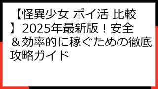 【2025年最新】怪異少女 ポイ活徹底比較!最も効率的な稼ぎ方と注意点 「怪異少女」でポイ活って本当に稼げるの? どのポイントサイトがお得なの? そんな疑問をお持ちではありませんか? この記事では、「怪異少女」のポイ活案件を徹底的に比較し、...