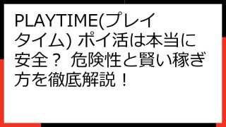 【徹底解剖】PLAYTIME(プレイタイム) ポイ活のリアルな口コミ・評判を徹底検証!稼げる?安全性は? PLAYTIME(プレイタイム)で本当に稼げるのか、気になっていませんか? 数あるポイ活アプリの中でも、ゲームをプレイするだけでお小遣...