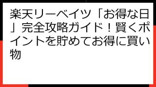 楽天リーベイツ「お得な日」徹底攻略!賢くポイントを最大化する方法 楽天リーベイツでお得に買い物をしたいけど、どうすれば効率よくポイントを貯められるのか悩んでいませんか? 「お得な日」を狙って賢く買い物をするためのコツを知っていれば、普段の買...