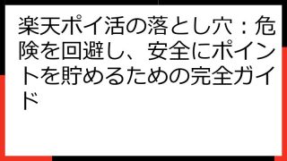 楽天ポイ活で賢くポイントゲット!おすすめ戦略&裏技徹底ガイド 楽天ポイントを効率的に貯めて、賢くお買い物しませんか? この記事では、楽天市場をはじめとする楽天経済圏を最大限に活用したポイ活戦略を、初心者の方にも分かりやすく解説します。 ポイ...