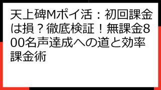 【2025年最新】天上碑M ポイ活徹底比較!最速攻略法と報酬最大化の秘訣 「天上碑M」でポイ活を始めたいけど、どのポイントサイトがお得なの? どうすれば効率的に名声を上げられるの? そんな疑問をお持ちではありませんか? この記事では、「天上...