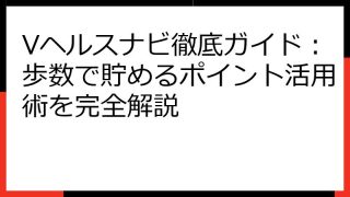 ```html Vヘルスナビで月収いくら?徹底解説!効率的な稼ぎ方と現実的な収益シミュレーション ``` 皆さん、こんにちは! 最近話題のポイ活アプリ「Vヘルスナビ」をご存知でしょうか? 歩くだけでポイントが貯まる、手軽さが人気の秘密です。...
