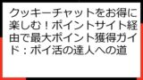- クッキーチャット ポイ活完全ガイド:高還元案件から口コミ・攻略まで徹底比較!