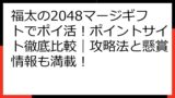 福太の2048マージギフト ポイ活 攻略:2024年最新情報と効率的な稼ぎ方
