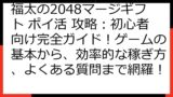 - 2024年6月時点で、これらのサイトでは「福太の2048マージギフト」の案件は見つかりませんでした。
