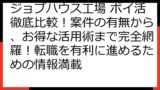 ジョブハウス工場を最大限に活用し、お得に転職活動を進めるためのヒントが得られるでしょう。