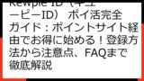 ポイ活初心者から上級者まで、Kewpie IDポイ活を最大限に活用するための情報が満載です。