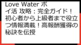 Love Water がどのようなゲームなのかを知ることは、ポイ活を始める上で非常に重要です。