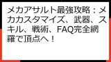 - メカアサルト 攻略FAQ:メカカスタマイズからエンドコンテンツまで、あなたの疑問を解決!