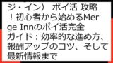 本記事では、「Merge Inn(マージ・イン) ポイントサイト 比較」というキーワードで検索しているあなたに向けて、最新のポイ活案件情報から、効率的な攻略方法、おすすめのポイントサイトまで、詳しく解説します。