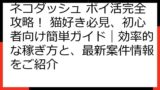類似の猫をテーマにしたタップゲームで、ポイ活案件が登場している例を参考に、ネコダッシュでも同様の展開があるか、注視しましょう。