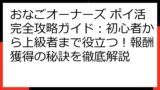 おなごオーナーズ ポイ活案件の基礎知識:最新情報と基本戦略