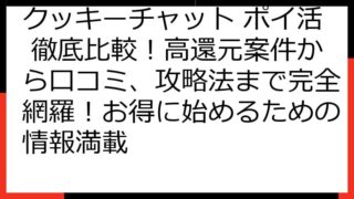 クッキーチャット ポイ活 徹底比較!高還元案件から口コミ、攻略法まで完全網羅!お得に始めるための情報満載