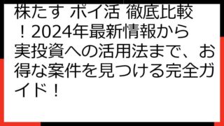 株たす ポイ活 徹底比較!2024年最新情報から実投資への活用法まで、お得な案件を見つける完全ガイド!