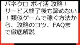 1. パネクロ ポイ活 徹底比較!サービス終了後も役立つ情報と、類似ゲーム案件の見つけ方
