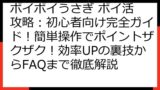 これらのヒントを参考に、ポイポイうさぎを最大限に活用し、楽しみながらポイ活を行いましょう。