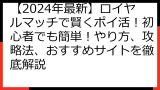 1. 【徹底検証】ロイヤルマッチのポイ活は本当に無理?攻略法と挫折ポイント完全解説