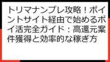 この記事を読めば、トリマナンプレ ポイ活の第一歩を安心して踏み出せるでしょう。