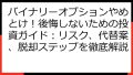 バイナリーオプション:高リスク・ハイリターン型、短期取引、自己責任。