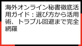 ```html 海外オンライン秘書活用ガイド:業務効率化とコスト削減を実現する最適解 ``` グローバル化が加速する現代において、企業の業務効率化とコスト削減は、ますます重要な課題となっています。 その解決策の一つとして注目されているのが、...