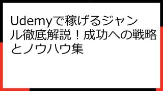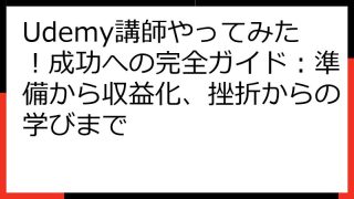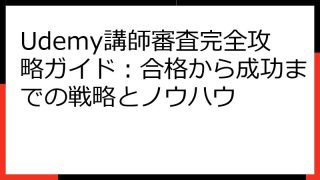 ```html Udemy講師として成功するための完全ガイド:ゼロから始めるためのステップバイステップ解説 ``` Udemyで講師として活動を始めたいと考えていますか? このガイドでは、Udemy講師になるための準備から、講座作成、公開、...